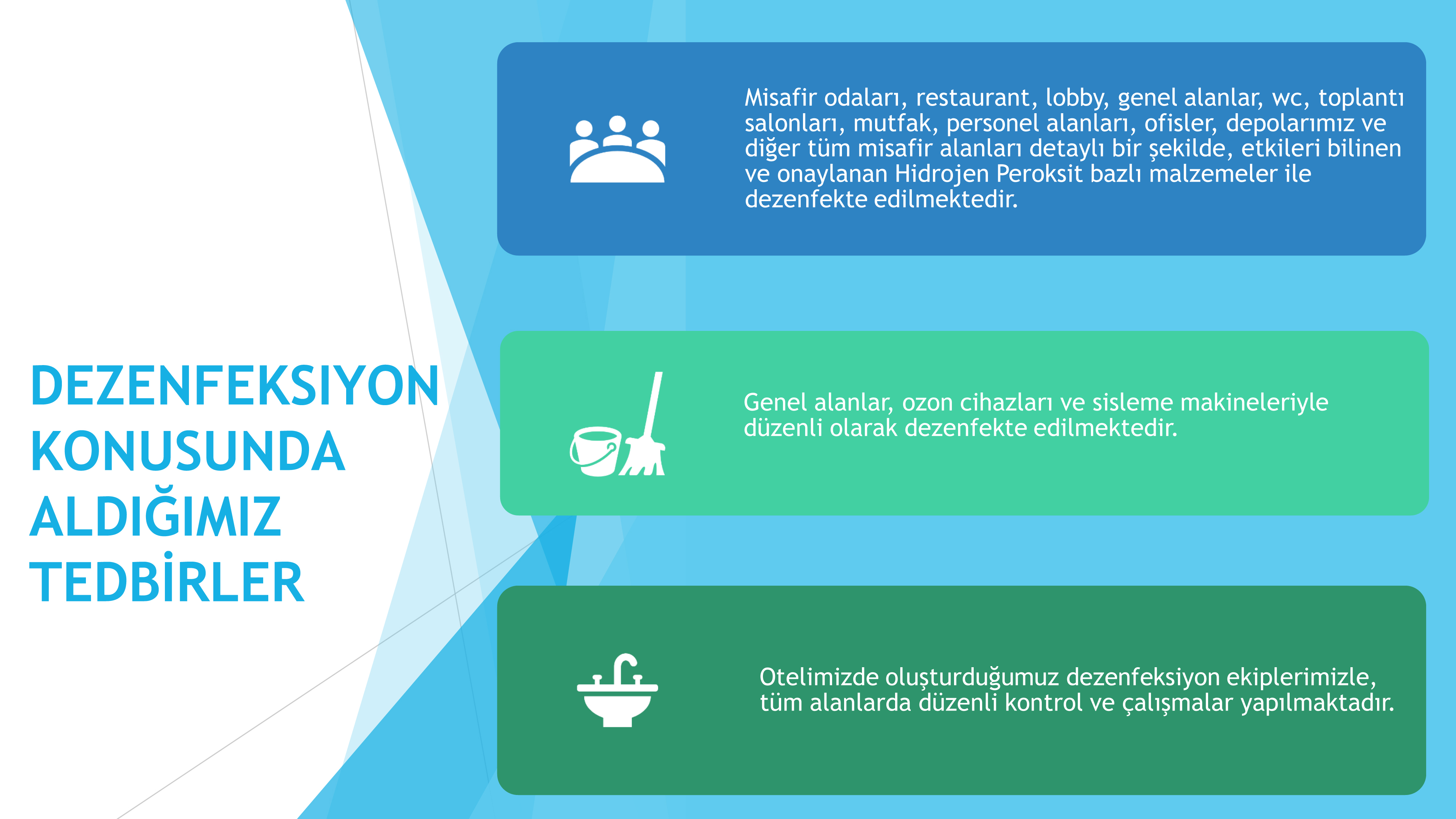 Tüm Odalarında ; LCD Tv , Ücretsiz Wifi , Saç Kurutma Makinesi , Minibar , Merkezi Isıtma , Direk Telefon Hattı , Dinlenme Koltuğu , Sehpa , Çalışma Masası , Halı Zemin , Yağmur Duş imkanları sunmaktadır.